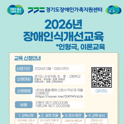 2026년 장애인식개선교육 (인형극, 이론교육) 신청기관 모집