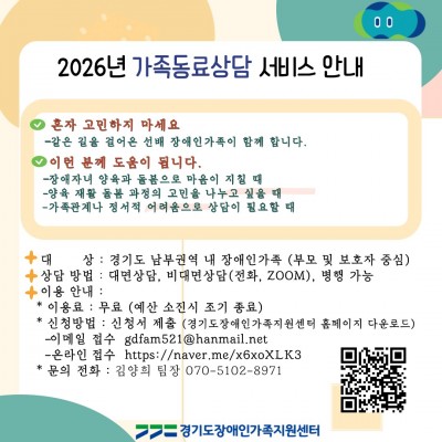 [경기도장애인가족지원센터] 2026년 가족자조모임 동아리 모집